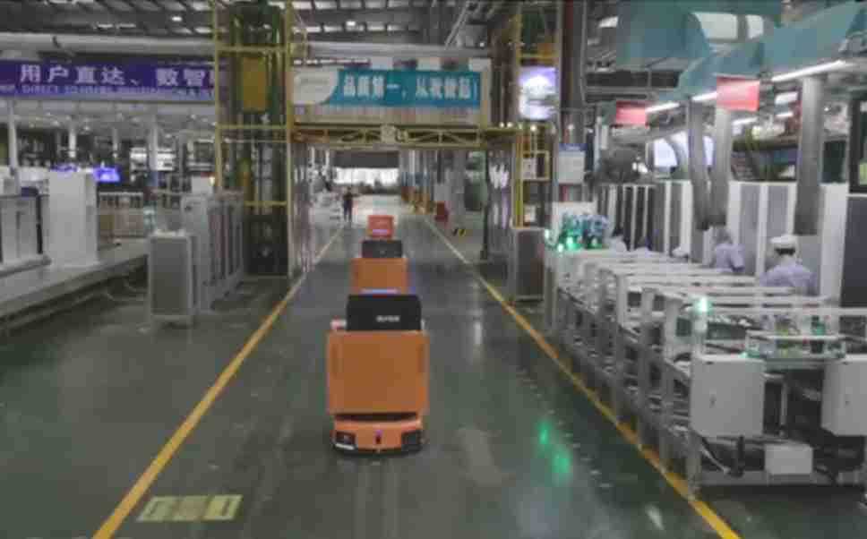 为车载冰箱物流配送打造的智能解决方案,,,包含产中物流通过潜伏举升AMR搬运至线边,,产后成品物流智能仓储,,,,流程包含产中物流智能齐套入库,,线边安灯叫料AMR智能配送至线边,,,,成品入库、、、、出库,,,通过无人堆高车机器人,,,智能仓储管理替代人工作业管理,,,实现更高存储、、、、更高效率、、更具柔性化的解决方案。。。