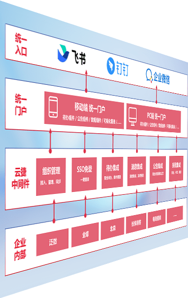 对协作平台提供支持服务,,,支持企业应用与协作平台对接,,包含组织同步、、、、消息集成、、、待办集成等。。。支持目前主流的协作平台:钉钉、、、企微和飞书。。